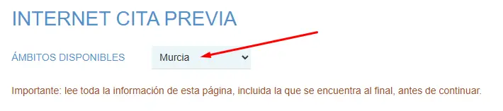 En el listado de «ÁMBITOS DISPONIBLES» debes de seleccionar tu provincia., posteriormente la oficina en la cual quieres solicitar la cita previa para la fe de vida.